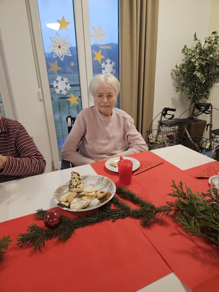 In festlich geschmückter Atmosphäre, mit liebevoll dekorierten Christbäumen und warmem Kerzenlicht, feierten Bewohnerinnen und Bewohner gemeinsam die schönste Zeit des Jahres. Kulinarisch wurden sie mit einem klassischen Weihnachtsessen verwöhnt – Klöße, Blaukraut und zartes Wildgeschnetzeltes, ganz so, wie viele es aus früheren Familienfeiern kannten. Für viele weckte dieses Menü wertvolle Erinnerungen an vergangene Weihnachtsfeste.